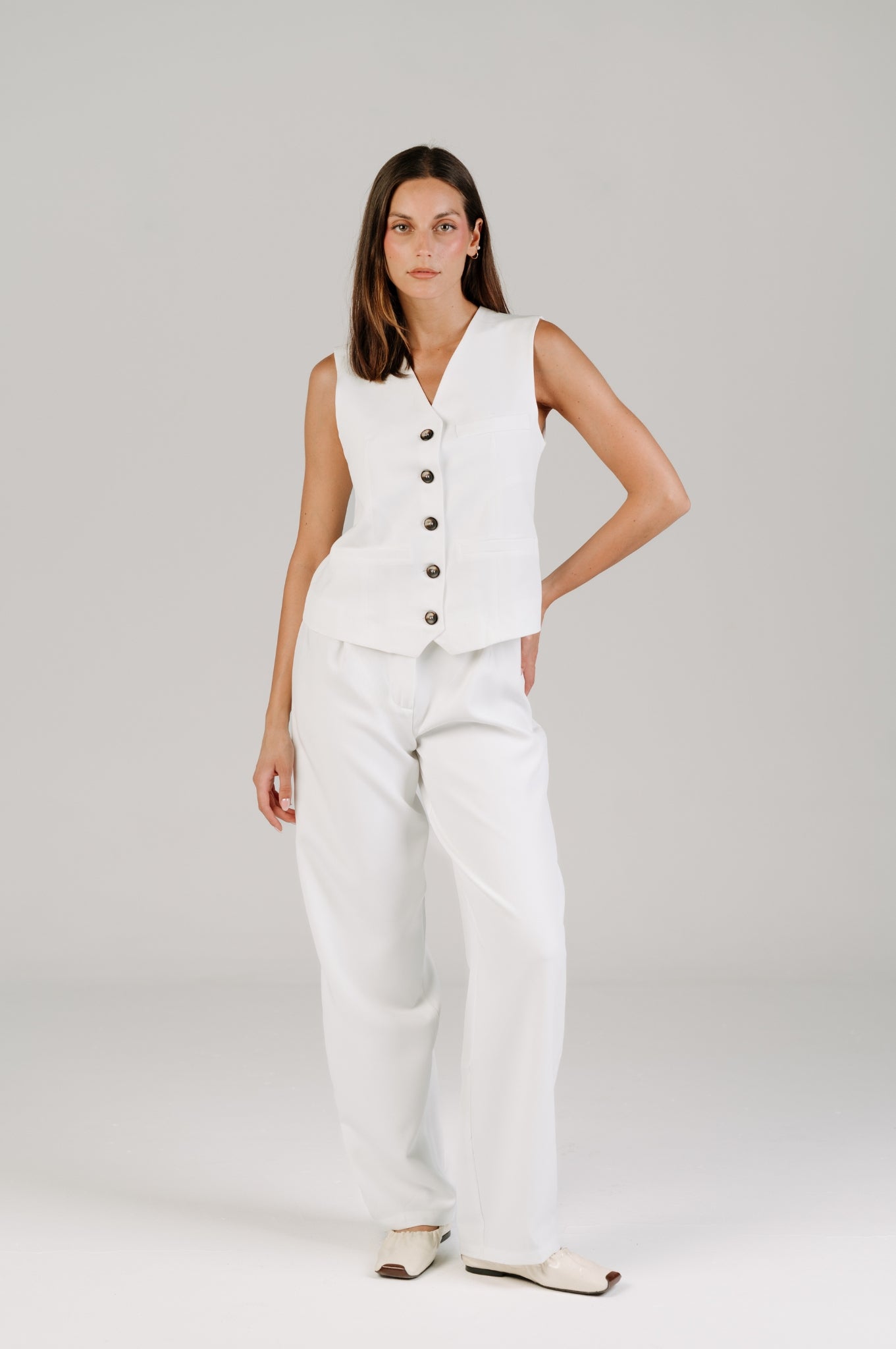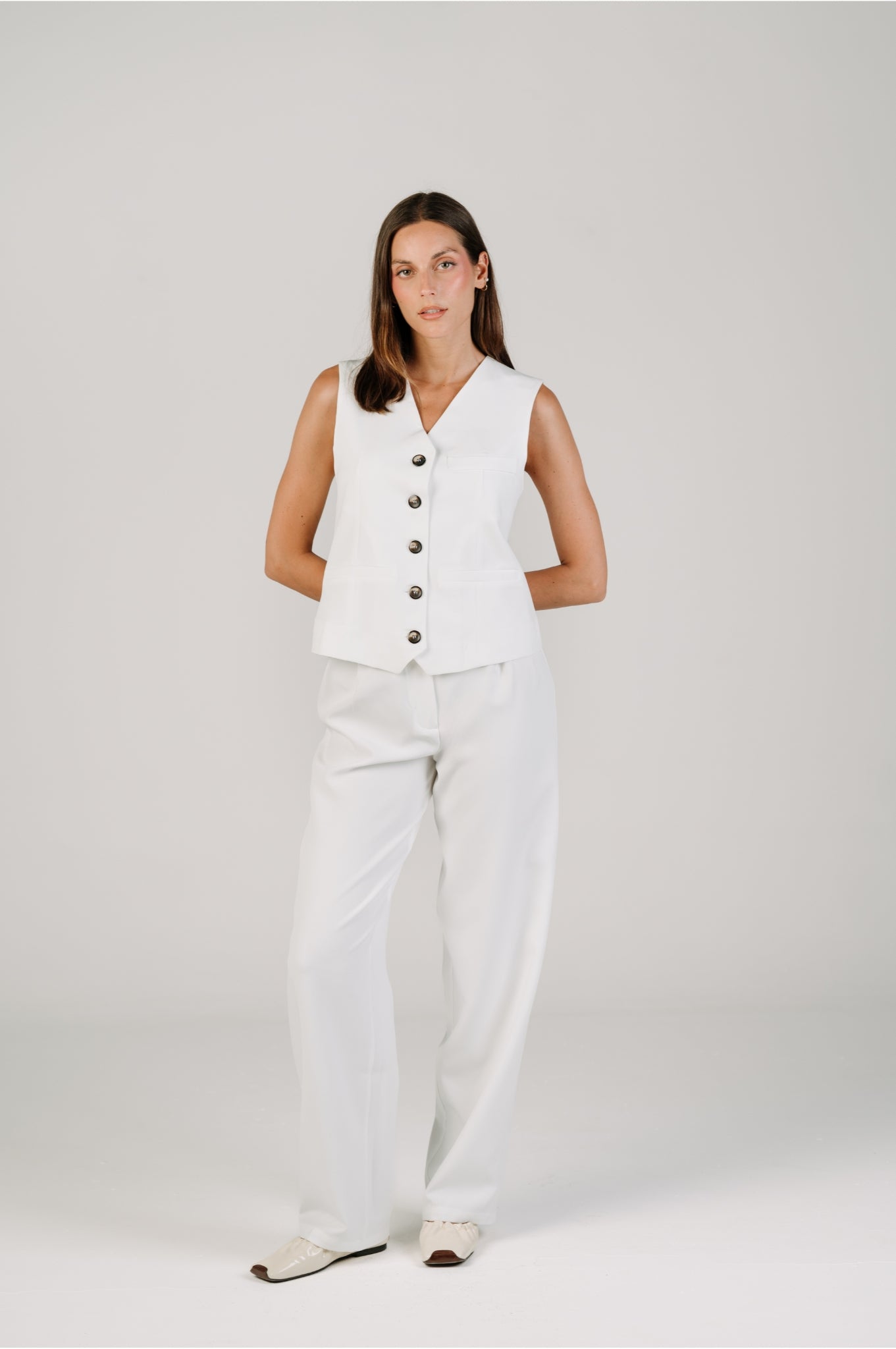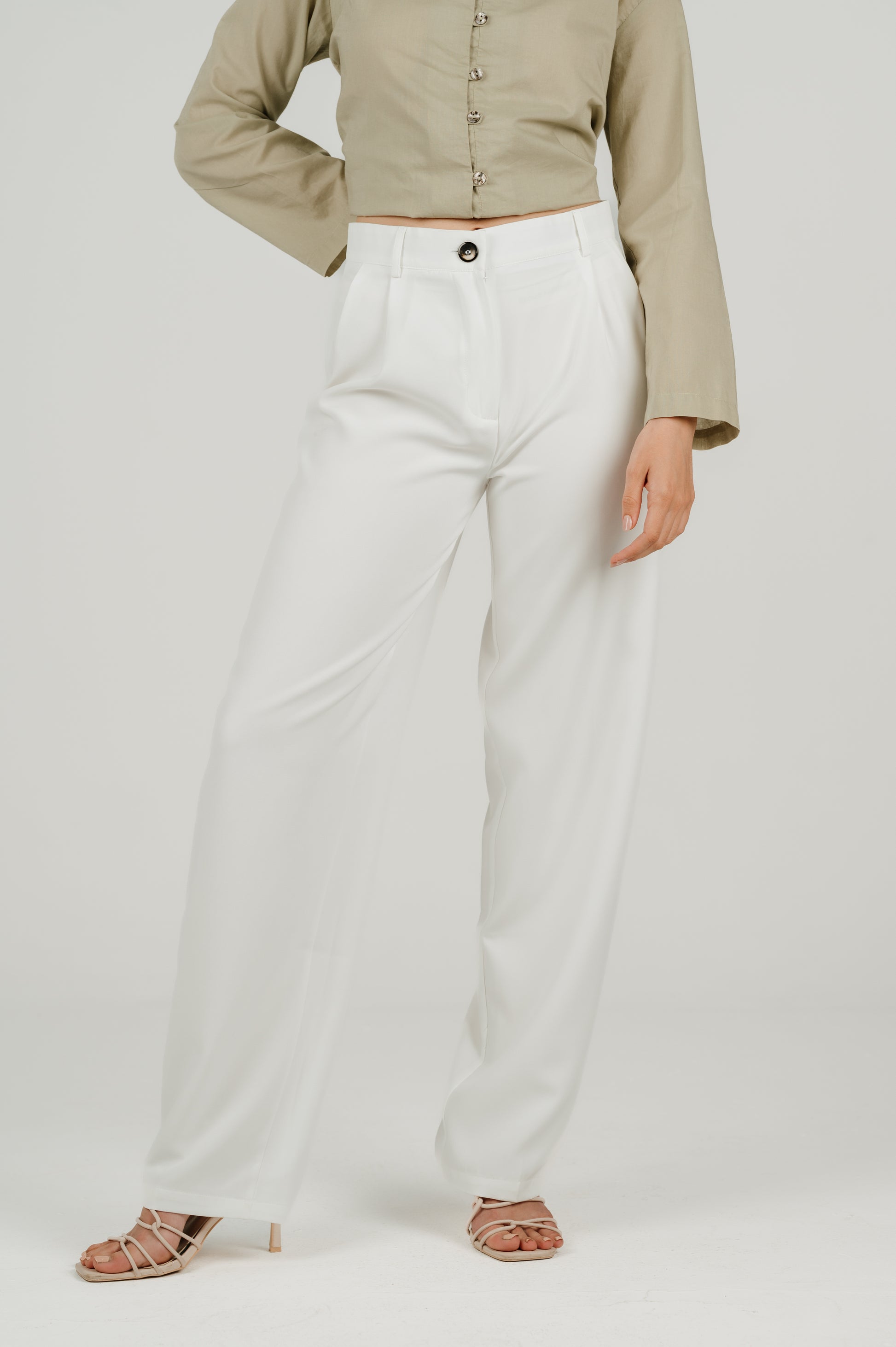 Must-have summer staple: the light and loose off-white pants. These pants are offering a relaxed and comfortable fit that's perfect for everyday wear or dressing up for those memorable summer occasions.